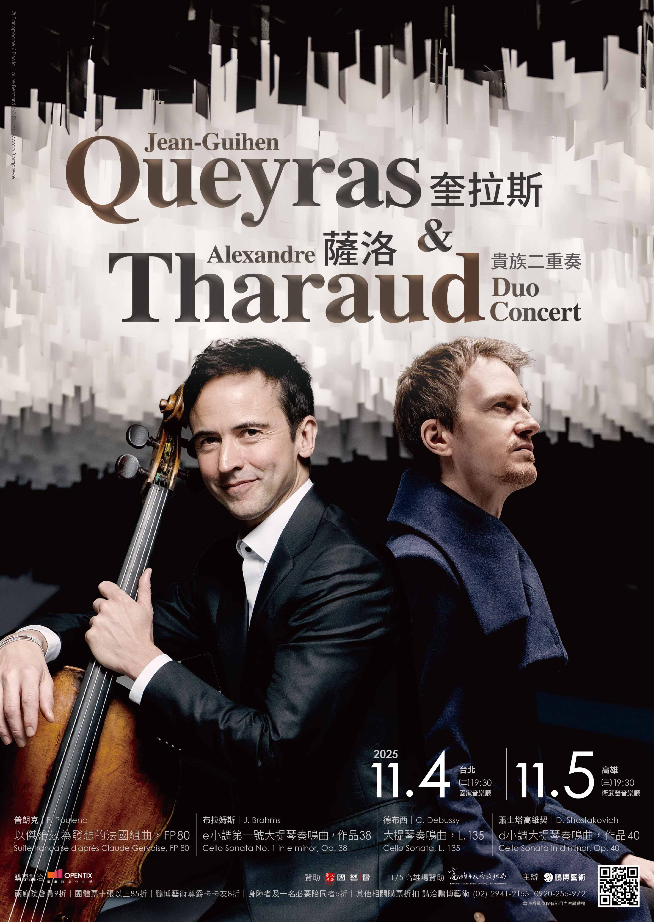 法國大提琴家奎拉斯(Jean-Guihen Queyras)與法國鋼琴家薩洛(Alexandre Tharaud)的二重奏旅程,在今年滿30年,這次來台他們安排一套標誌他們多年演出默契與情誼的曲目,分別將於11月4日晚上於臺北國家音樂廳,及11月5日晚上於高雄衛武營音樂廳登場,曲目以印象樂派為經,浪漫主義為緯,從全新視角詮釋布拉姆斯、普朗克,以及德布西的經典之作!
