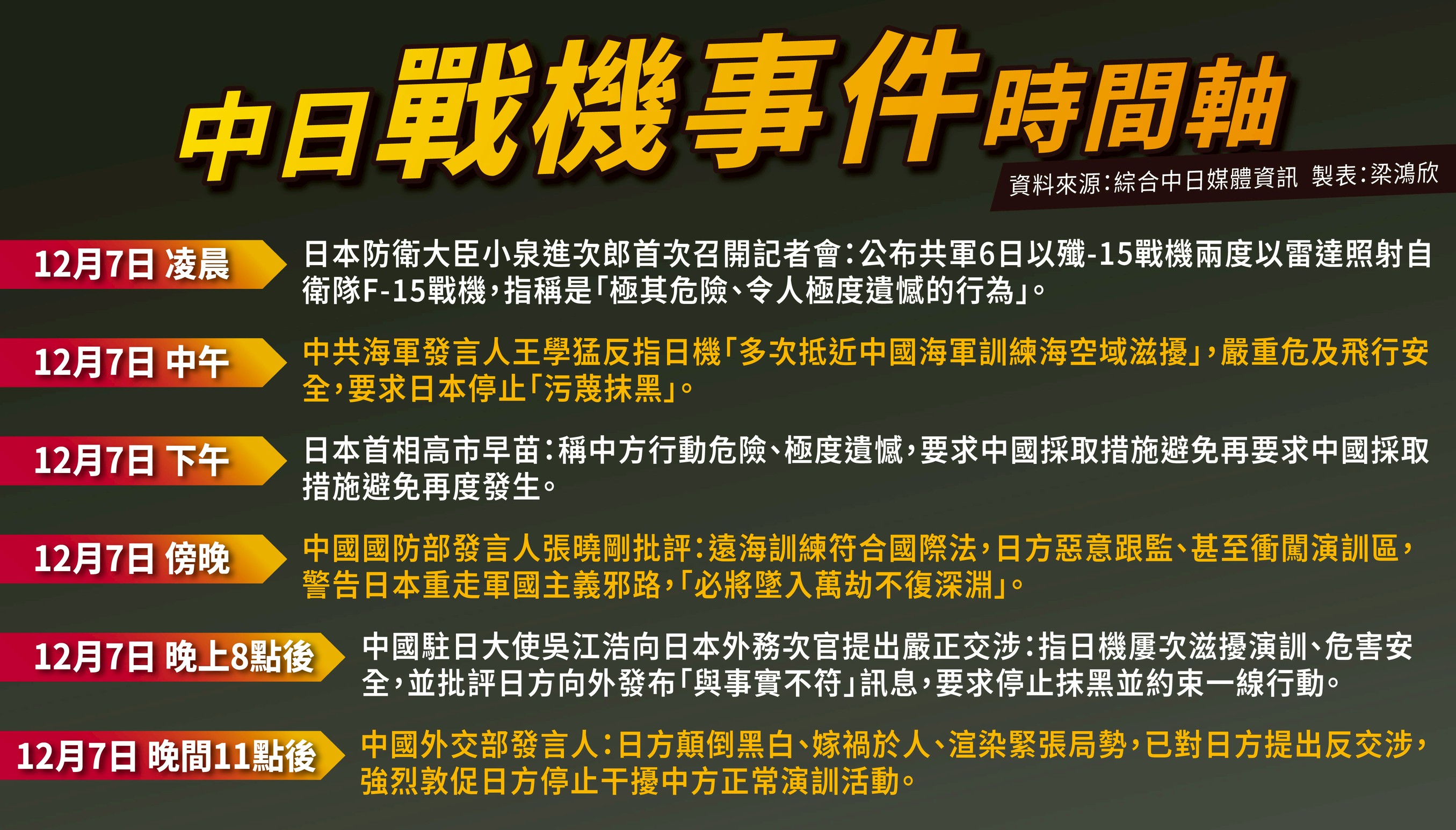 當時日本防衛省在晚間緊急召開記者會,更用「特別異常事例」來形容,認為當時雙方「稍有錯誤」就可能陷入非常危險的局面。
