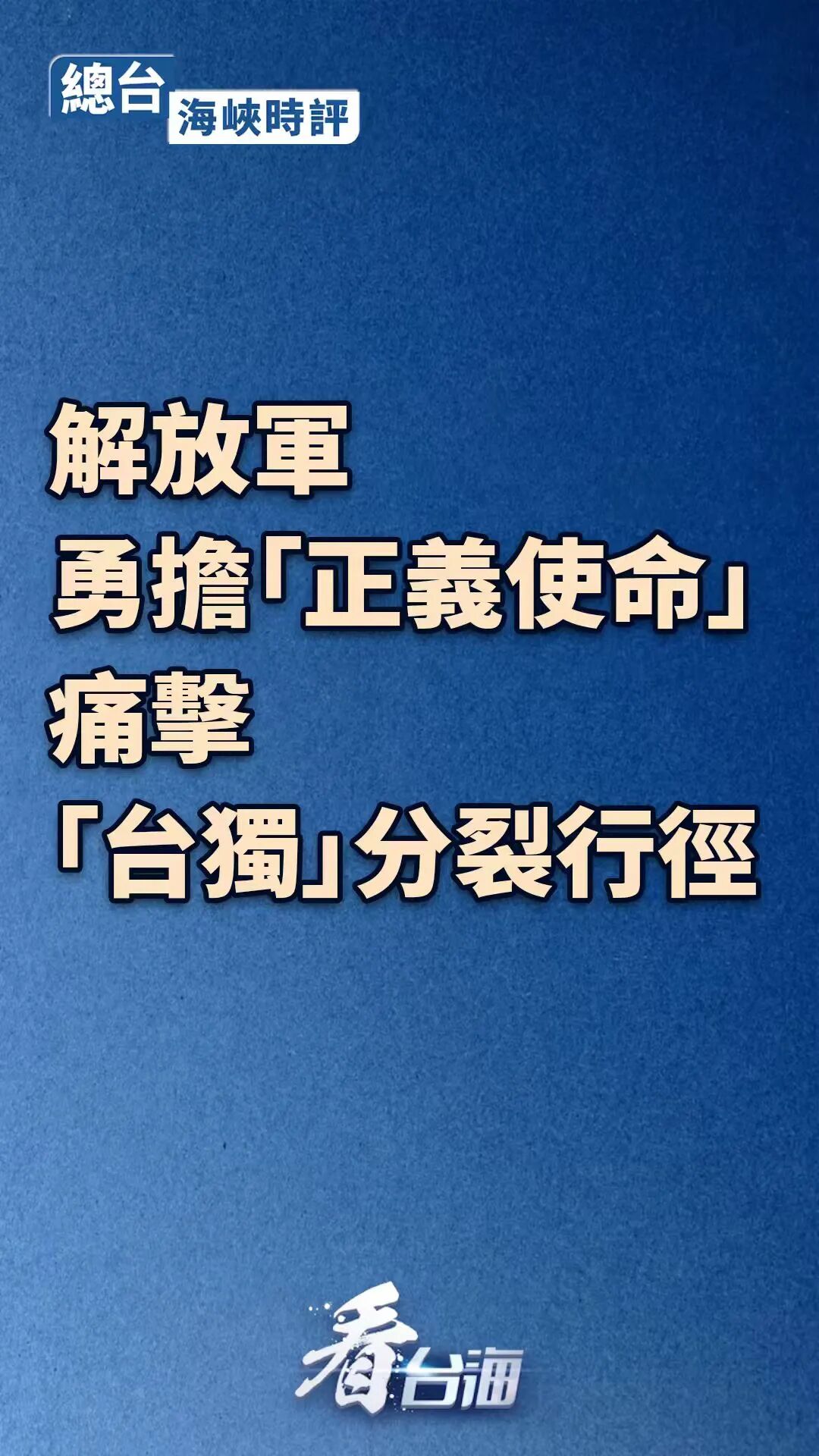 中央廣播電視總台旗下《台海之聲》發表「海峽時評」指出,解放軍此次重拳出擊,展現的是對分裂勢力的雷霆回應,也是對國家主權與領土完整的堅定捍衛。