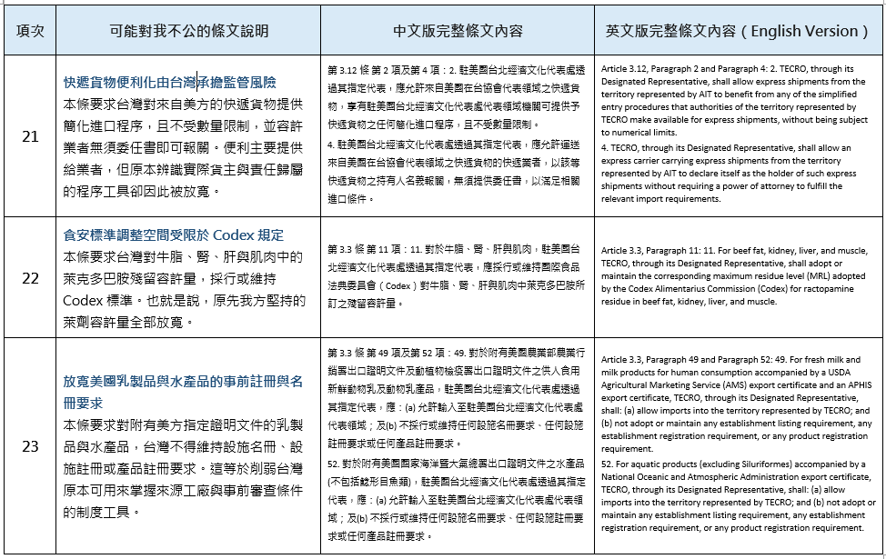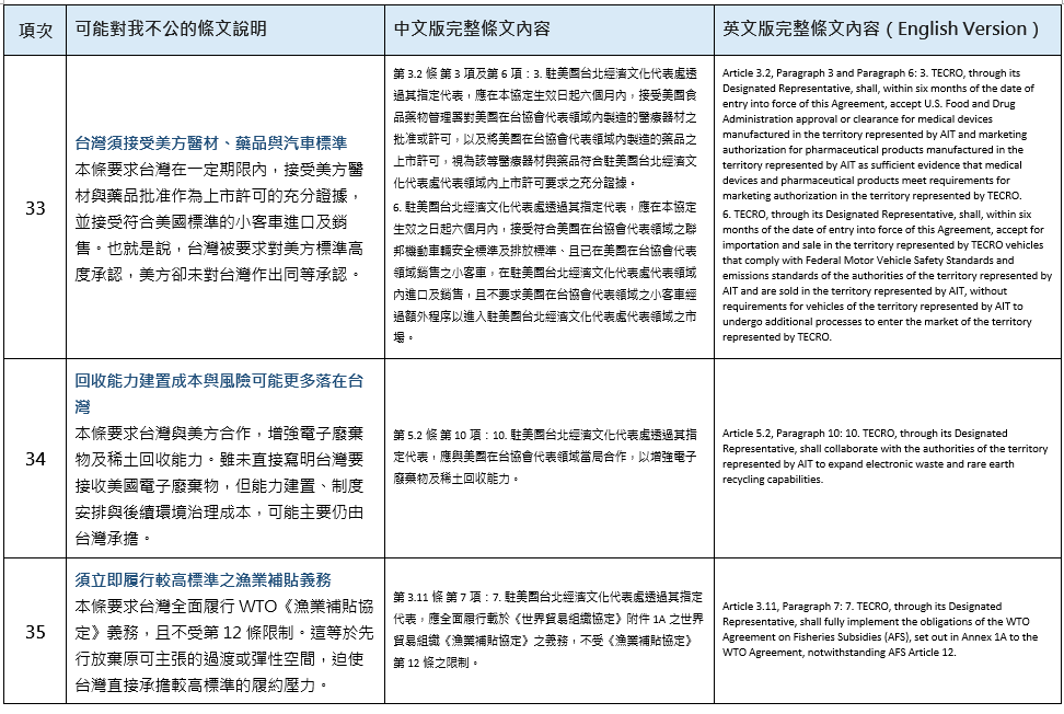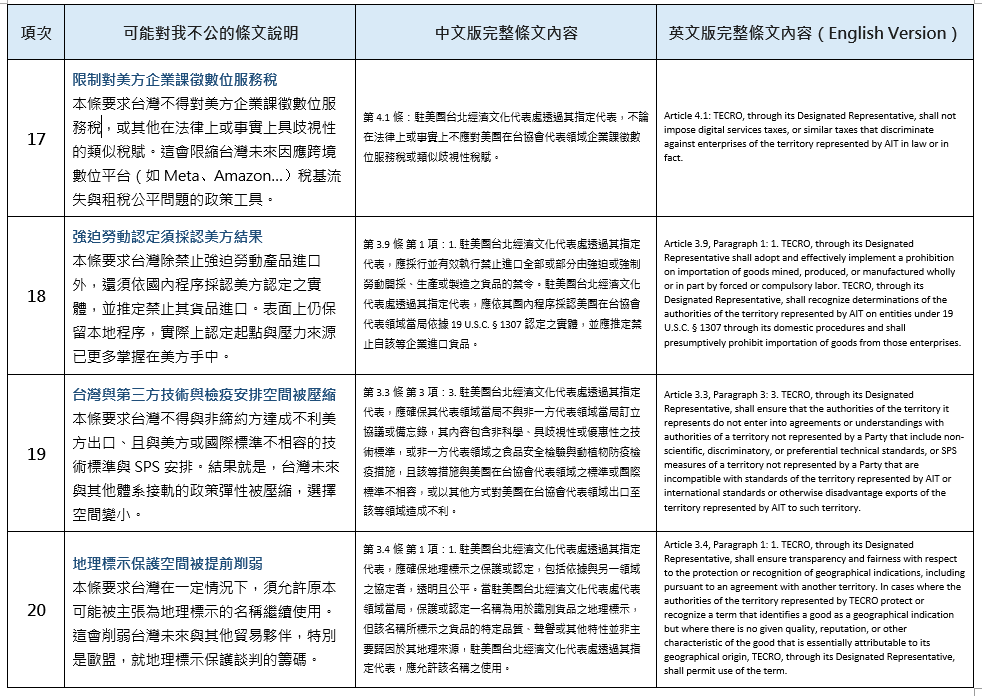 因為工作的需求,曾花了不少時間透過AI工具協助,反覆研讀、研究了ART原始條文。在文字的迷宮中,找出了36處明顯不對等的細節。這些條文不僅涉及我們的餐桌,更深入到了國家的行政與司法主權。