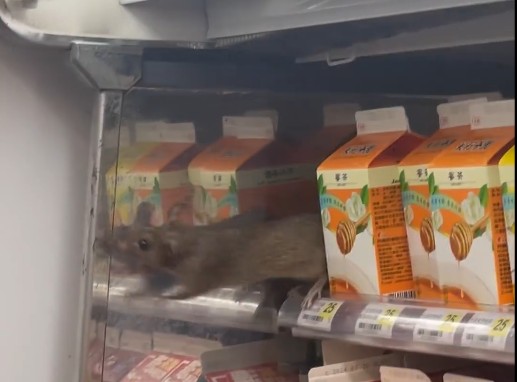 一名帳號名為「j_h1024」的網友今天上午在網路論壇「threads」發文表示,北車紅線上來接台鐵那邊的7-11有大米奇,並分享兩段影片,從畫中可以清楚看到,一隻大老鼠從生鮮食材區一路爬到飲料貨櫃中,最後還從冰箱縫隙探出頭來並迅速往天花板移動。