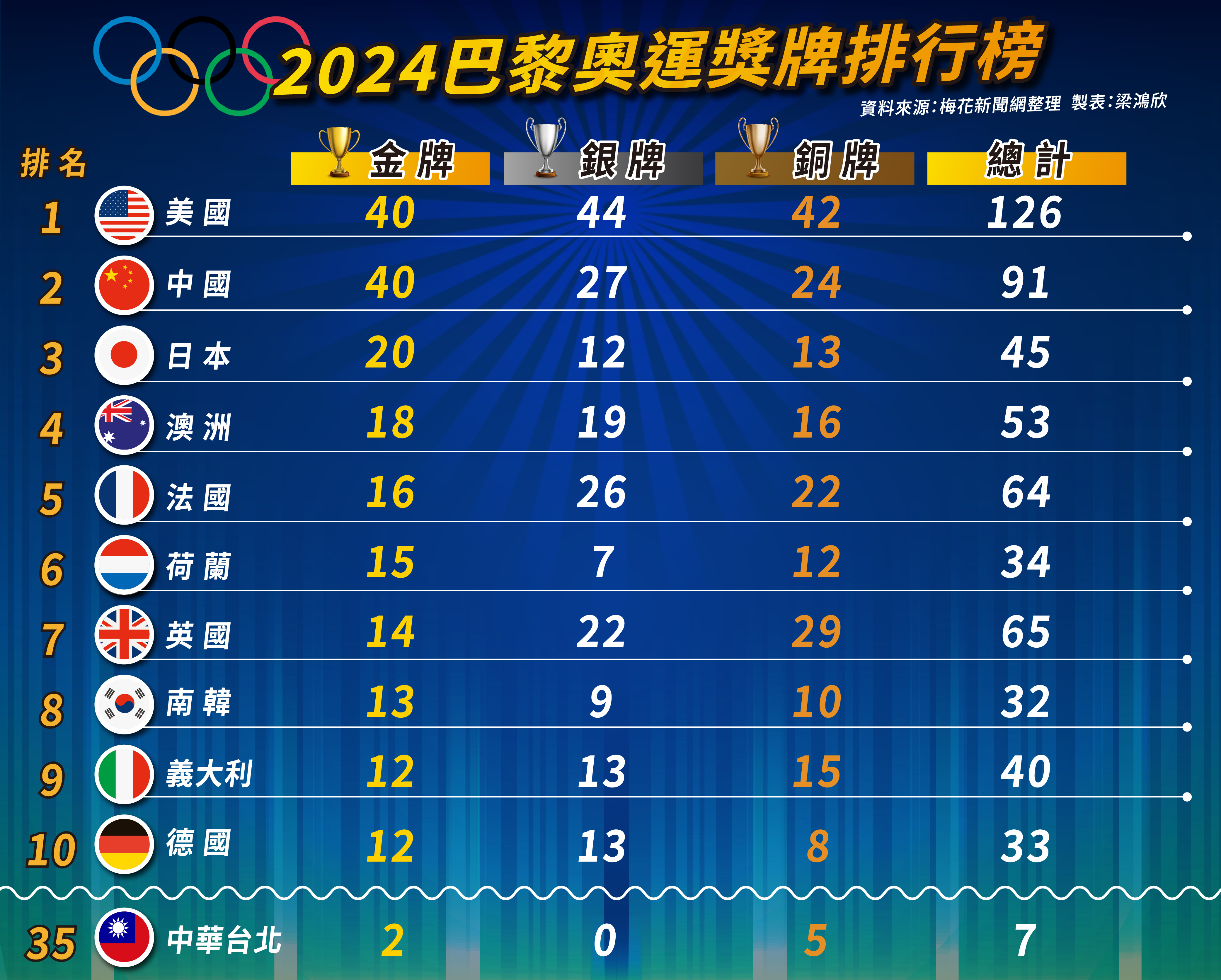 巴黎奧運會即將迎來閉幕式。中國大陸代表團也結束在巴黎奧運會上的所有項目,總計本屆奧運,大陸代表團共獲40金、27銀、24銅,獎牌總數達91塊,超越倫敦奧運的39金,並創下境外參加奧運會最佳成績。大陸代表團奧運參賽史的金牌數已突破300枚。新華社稱,300金的背後,是這40年來堅定邁向體育強國的中國。