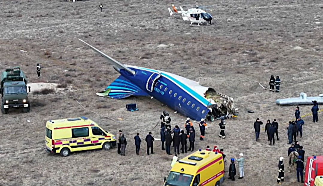 亞塞拜然總統辦公室表示,事發時,飛行員奮力控制客機,拼盡全力尋找著陸點。由於機身上有破洞,一些機組人員受傷,且客艙失壓,客機在失控下飛越裏海(Caspian Sea),在迫降中墜毀。這起空難共造成38死,有29人倖存,總統辦公室說,這些乘客得以生還,全賴飛行員的勇氣和專業精神。