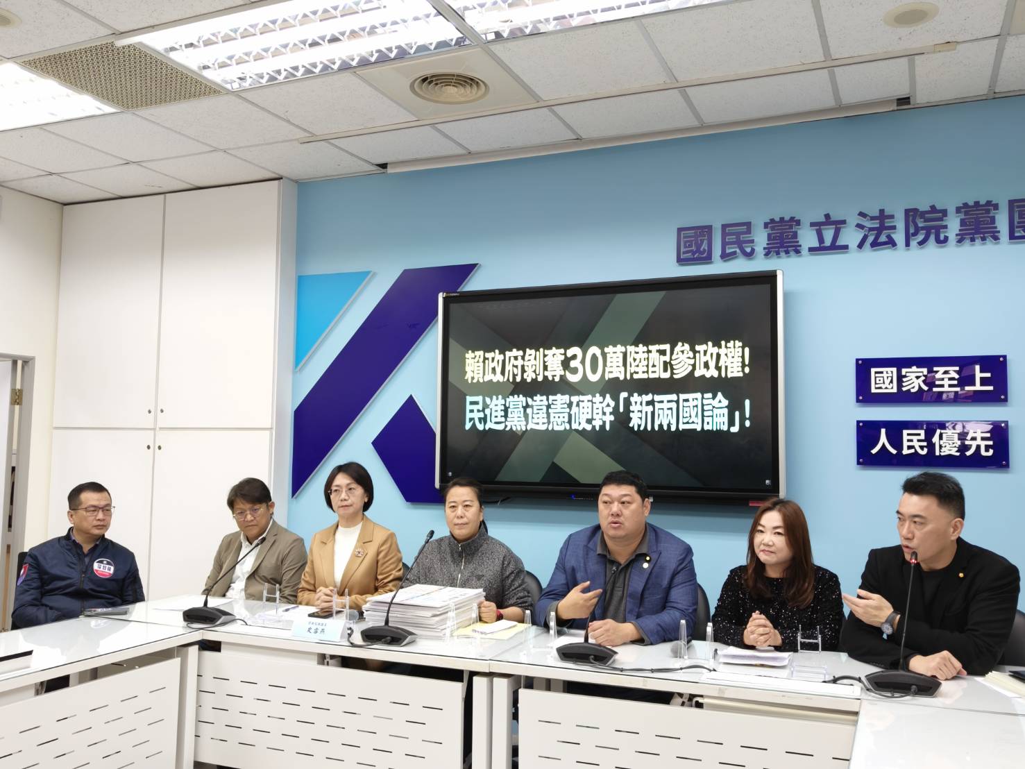 國民黨團今召開「賴政府剝奪30萬陸配參政權!民進黨違憲硬幹『新兩國論』」記者會,史雪燕及國民黨副書記長林沛祥、南投立委游顥及馬文君、立委翁曉玲、羅智強、台東立委黃建賓出席。