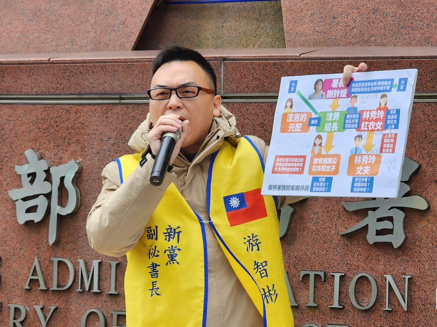 一開始,遊智彬在各大電視台的轉播處待著,並未佩戴任何證件。現場攝影記者詢問他是誰,為何能進入記者席,游智彬反而對該媒體進行反擊,諷刺「這一定是綠的,別多管閒事。」隨後,他的桃園市政顧問背心被議事人員要求脫掉。
