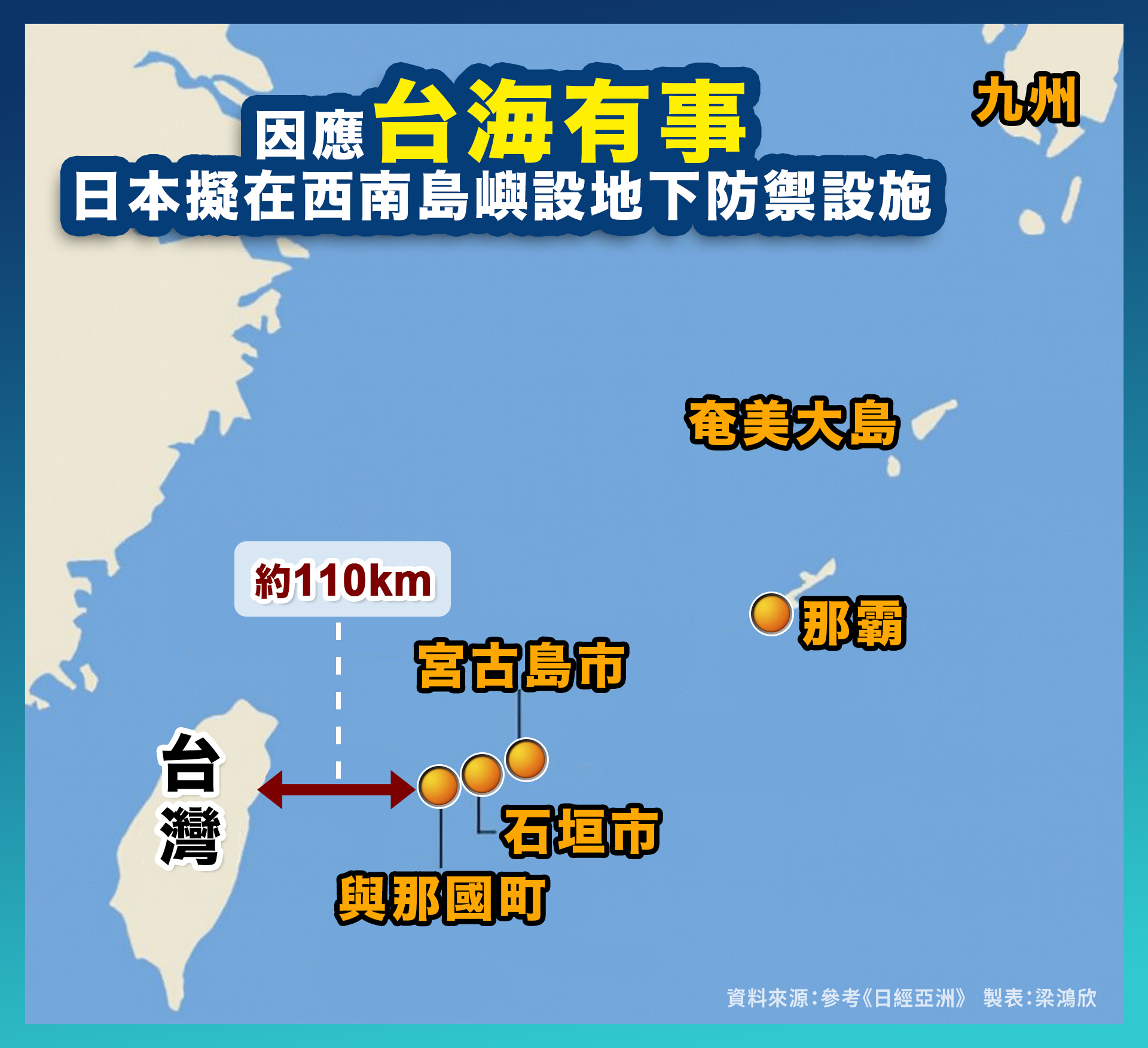 此外,距台灣最近的與那國町,將在町公所地下建置200人規模掩體,預計2027年度啟用。石垣市與竹富町、多良間村也在研擬類似工程。