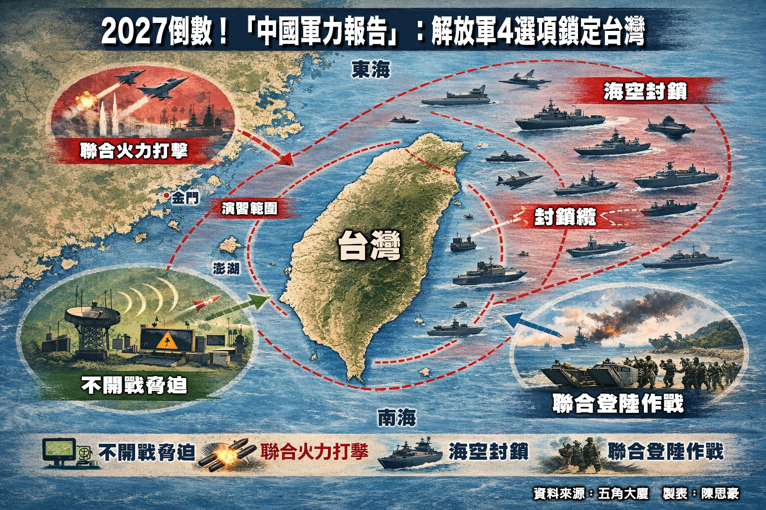 報告不僅點出中國核武、海上力量、常規長程打擊、網路與太空能力的快速膨脹,更將焦點鎖定兩岸情勢,詳盡剖析北京對台「國家總體戰」策略與2027年「戰略決勝」的目標。報告強調,美中軍事關係「近年罕見地緩和」,並承諾擴大「軍對軍溝通」以確保戰略穩定,凸顯川普政府試圖在強硬防禦與對話緩和間尋求平衡。