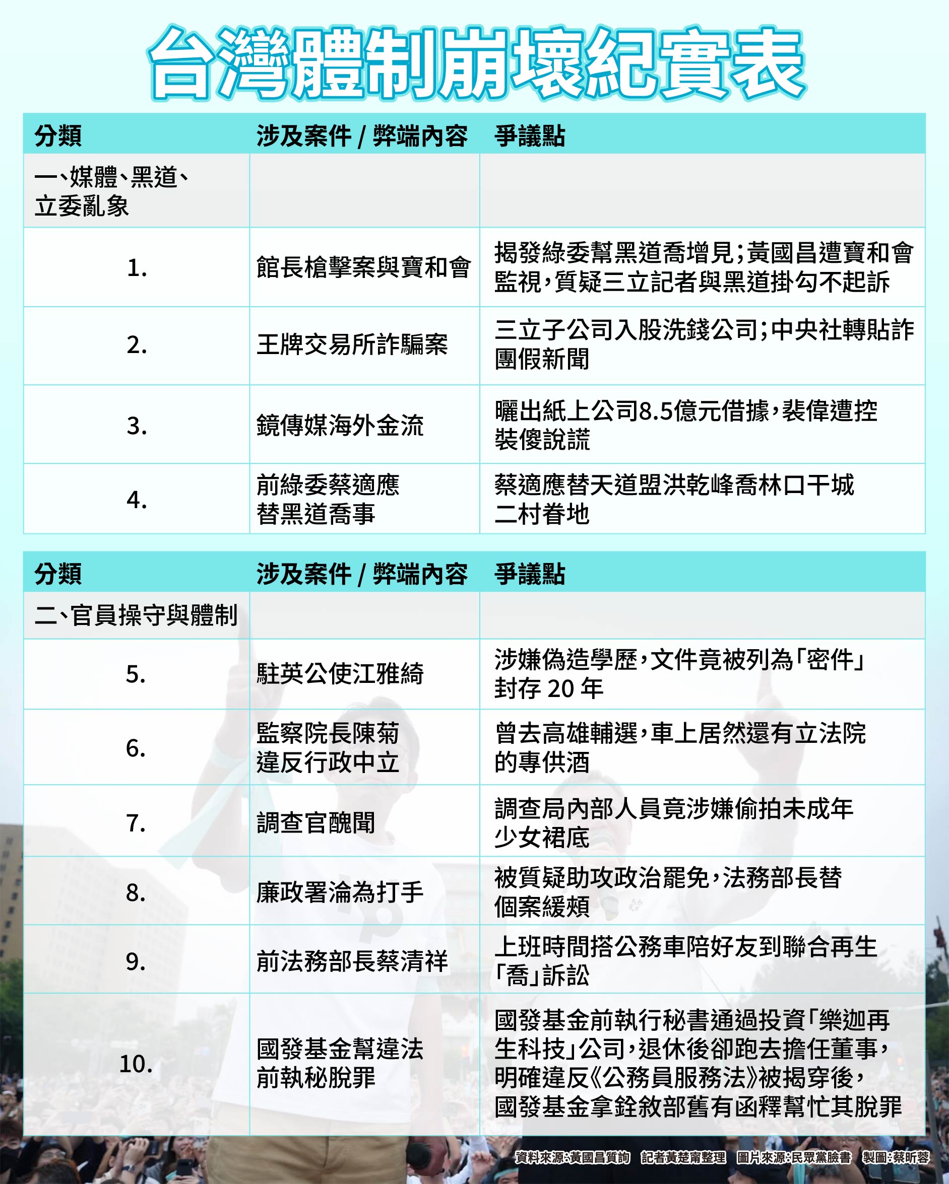 黃國昌質詢中所揭發的每一樁弊案,背後都是納稅人的血汗與國家的根基。儘管「2年條款」屆滿,這份台灣崩壞紀實卻不應隨著他的交棒而塵封。國人更需反思:當抗中保台淪為奪權的口號,而牟取私利成為執政的生活,面對這樣的墮落,台灣社會還要沉默多久?