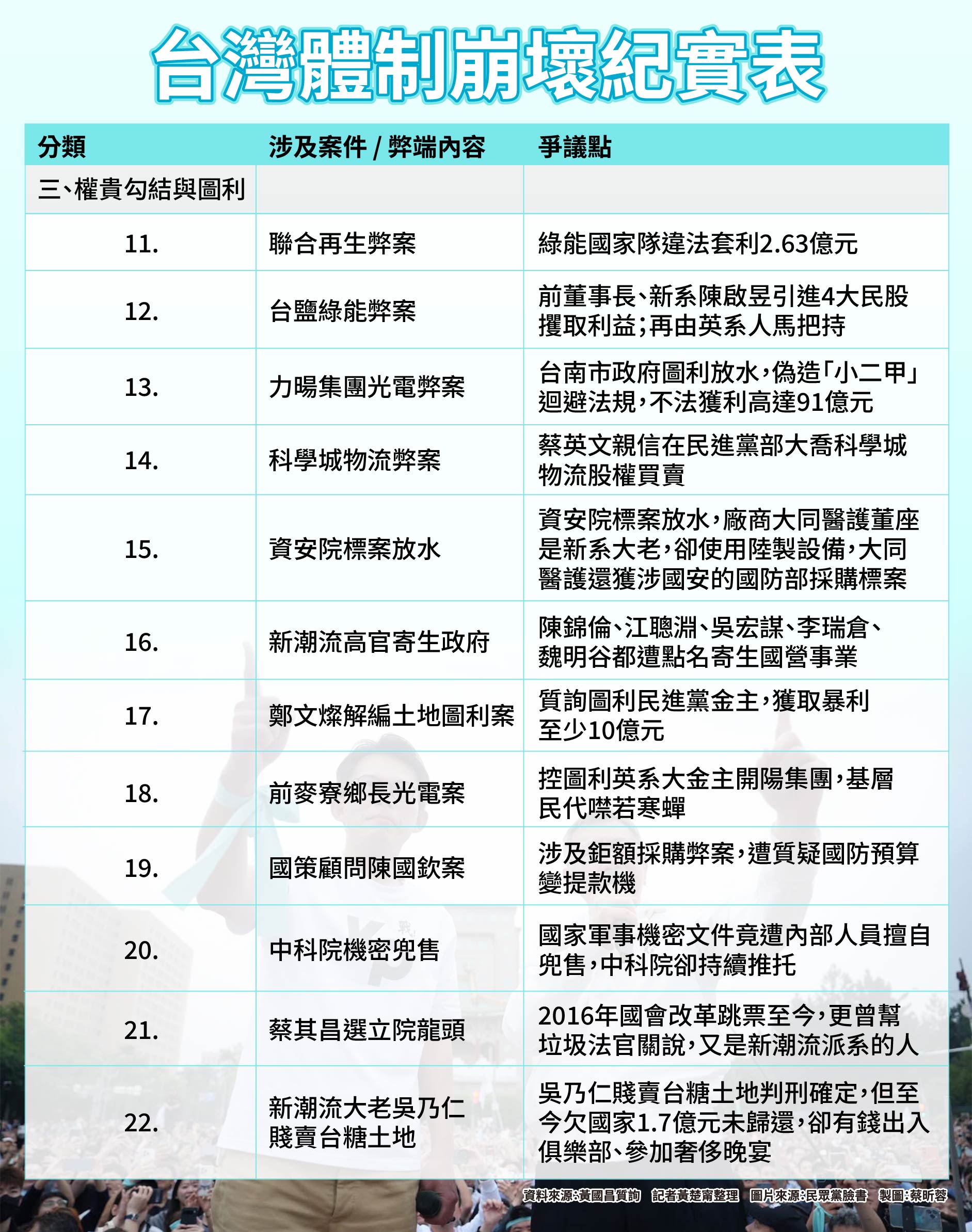 繼上篇撕開光電黑幕後,時任民眾黨立委黃國昌的揭弊地圖持續擴張,直擊國家資源如何淪為私人集團的盤中飧。本篇進一步梳理黃國昌近年追查的核心弊案:從科學城物流公股變私有,雙手奉送給紅色資本的股權買賣案、數發部資安院標案用陸製舊品仍過關,到新潮流寄生政府、國營事業,吸光納稅人的血、以及國家通訊社幫詐團背書假資訊等案。當黃國昌「D槽」全開,不只是個人的質詢紀錄,更是一部台灣崩壞紀實。