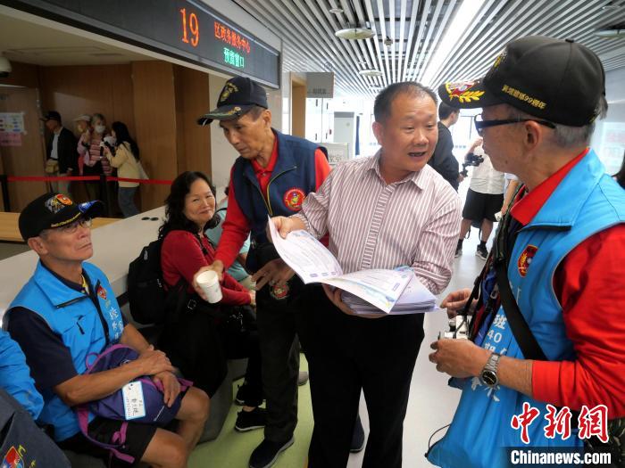 湖里區委台港澳辦主任方旭明(右二)在辦證現場向台胞推介湖里區營商環境、惠台政策。(湖里區供圖)圖 /取自中新網