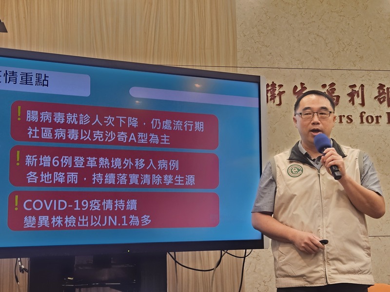 台北市衛生局長陳彥元表示,腸病毒感染併發重症好發於5歲以下幼兒,而幼兒感染腸病毒71型易引起神經系統併發症,透過疫苗接種,可降低幼兒罹患腸病毒71型重症的風險。